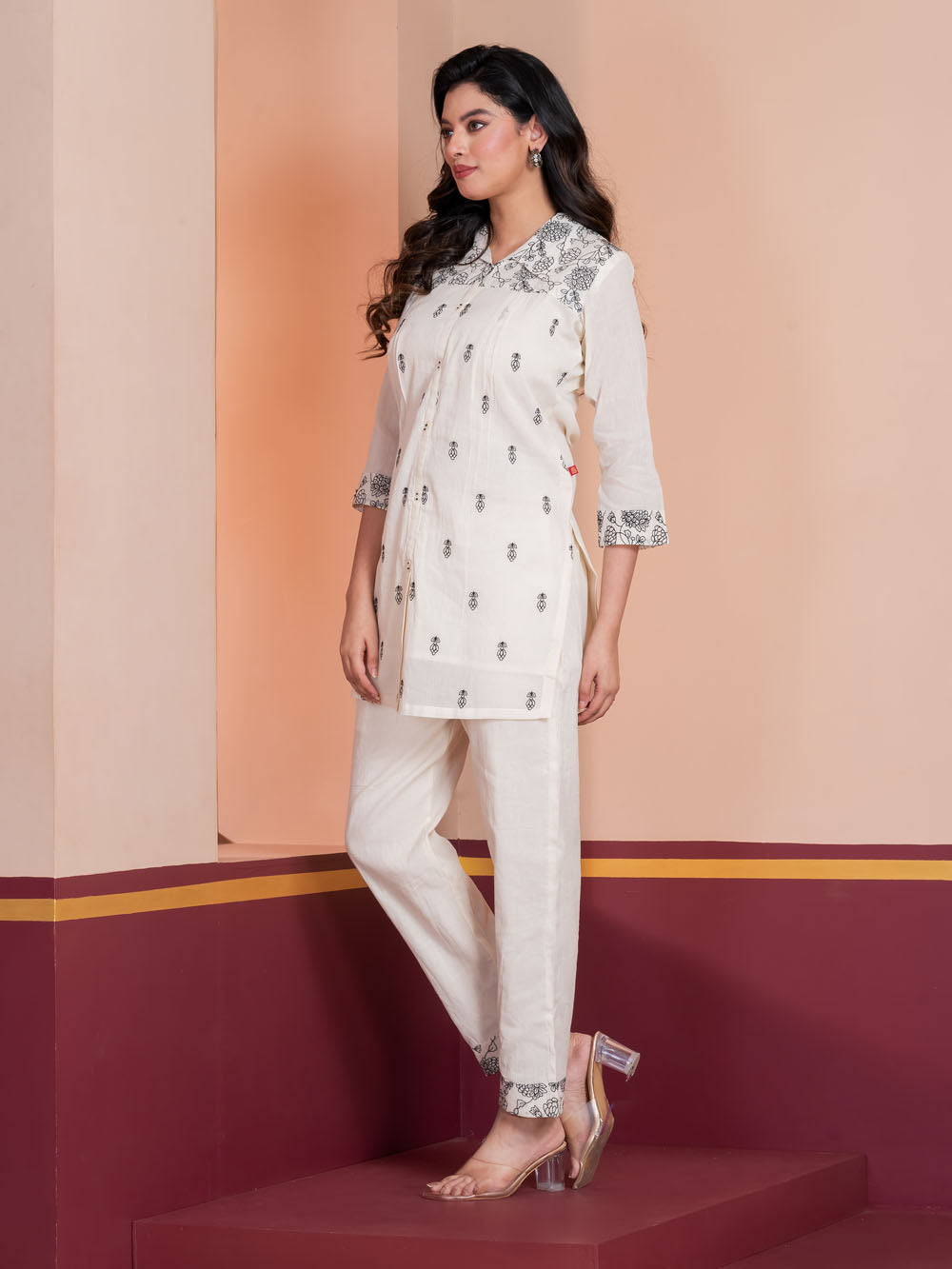 MALKORA EVERYDAY CHIC CO-ORD SET-OFFWHITE WITH BLACK EMBROIDERY